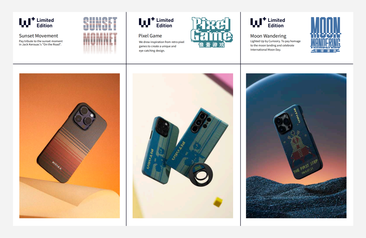 Die ersten Hüllen von PITAKA waren nur in Schwarz und Grau erhältlich, aber mit aktualisierter Technologie und mehr kreativen Ideen hat die exklusive, patentierte Fusion Weaving™-Technologie von PITAKA eine Reihe regelmäßiger oder kreativer Muster hervorgebracht, darunter [Ouvertüre] [Rhapsodie] [Konzert] [Sonate], und die [Weaving+] Serie, die im Jahr 2023 ins Leben gerufen wurde, ist ein großartiges Zeugnis ihrer unendlichen Kreativität, [Sunset Moment] [Pixel Game] [Moon Wandering] enthält Jacquard-Handwerkskunst und demonstriert endlose Fantasie auch kühne Innovation.