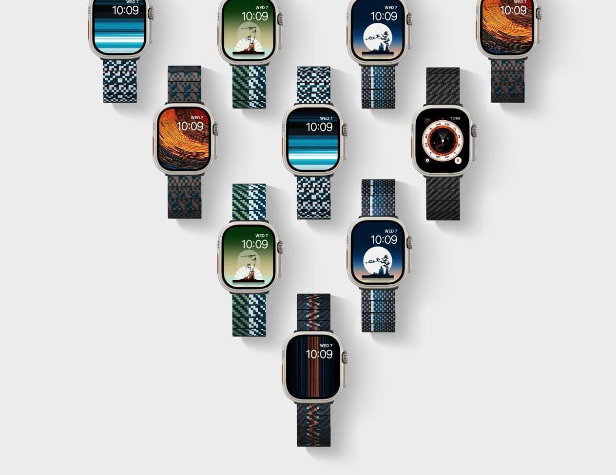 Ein weiteres bemerkenswertes Merkmal ist, dass PITAKA die natürlichen Elemente der orientalischen Ästhetik, die Romantik symbolisieren – Wind, Blumen, Schnee und Mond – als Themen aufgreift und die Serie der ChromaCarbon-Uhrenarmbänder produziert. Wir haben vier Gedichte ausgewählt, die sich jeweils auf die vier Jahreszeiten beziehen, aus der frühesten Gedichtsammlung Chinas – dem Buch der Poesie – und vier sentimentale Liebesgedichte gewebt, die den ewigen Kummer und die Freude der Liebe besingen. Durch diesen Prozess erhalten unsere Armbänder ein ansprechenderes Design und passen perfekt zu unseren Handyhüllen